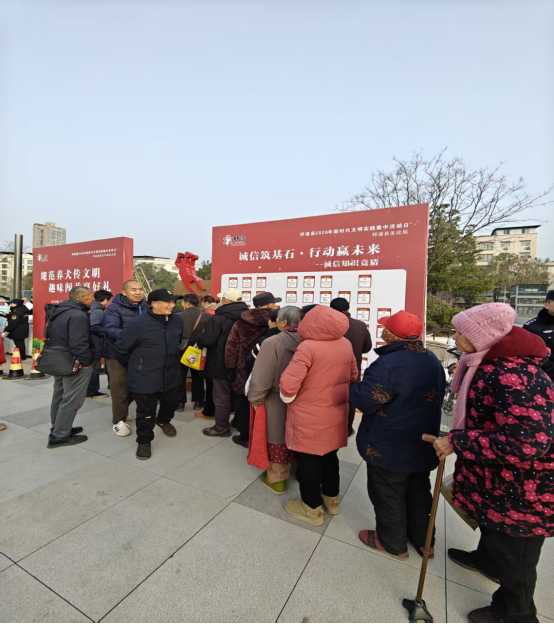 活動聚焦“普及誠信知識、強化誠信意識、踐行誠信理念”目標(biāo),創(chuàng)新采用線下“隨機抽題+現(xiàn)場作答+即時講解”的形式增強體驗感。精心設(shè)置單選題、情景判斷題等題型,內(nèi)容涵蓋誠信相關(guān)法律法規(guī)、社會信用體系建設(shè)政策、經(jīng)典誠信故事、日常誠信行為規(guī)范等多個方面?,F(xiàn)場群眾通過抽號答題、互動競猜的方式,在輕松氛圍中學(xué)習(xí)誠信知識。工作人員對題目中涉及的法律法規(guī)和信用知識進行現(xiàn)場解讀,實現(xiàn)知識普及與實踐指導(dǎo)有機結(jié)合?;顒痈鶕?jù)題目難易程度,對回答正確的老百姓發(fā)放抽紙、洗衣液、香皂等日常生活用品500余份?;顒蝇F(xiàn)場還配套發(fā)放《誠信建設(shè)宣傳手冊》等資料500余份,幫助群眾進一步理解“守信激勵、失信懲戒”的社會信用規(guī)則。